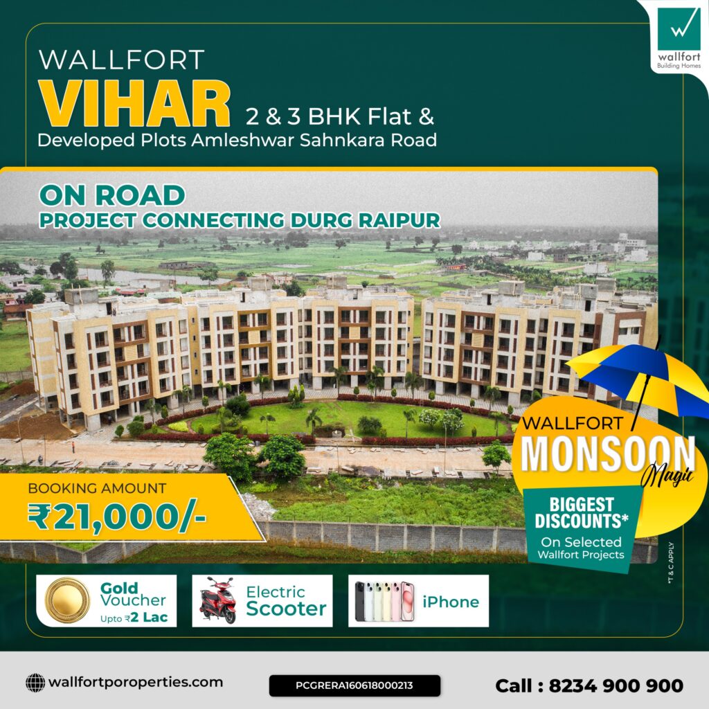 Real estate experts recommend that potential home buyers should visit the construction site more than once before making a final decision. Visiting the site during the monsoon season, when traffic is at its worst, will provide insights into the waterlogging situation and the area’s accessibility. In cities like Raipur, the monsoon is an appropriate time for buyers to explore and evaluate the condition of the building and the surrounding area. While assessing construction quality may not always be possible for under-construction properties, the rainy season is an ideal time to check the quality of a resale house. When finalizing the purchase of a top-floor flat, it’s essential to consider the possibility of leakage issues, especially in a resale property. It’s important to ensure that the flat can withstand the elements of nature before proceeding with the deal. The monsoon season serves as a test for any building, even one constructed by a reputed builder known for high-quality construction. There is also a great deal during this monsoon with the Monsoon Magic discount, where you will receive exclusive discounts on every project.